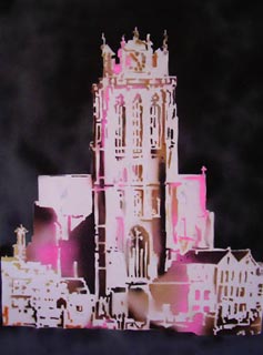 ‘Dit is dit’ was invited to participate at the celebration of this annual thing in Dordrecht. So we went there and made key chains. We also made this stencil of the famous church in Dordrecht so that people could make their own painting with it.