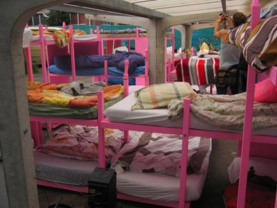 De eerste keer dat we een stapelbed (voor 5 personen), was tijdens de opbouw van de Moira expositie.