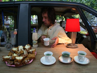 We serveerde de gasten verse koffie en turks fruit vanuit de auto, voorheen beter bekend als tactie.